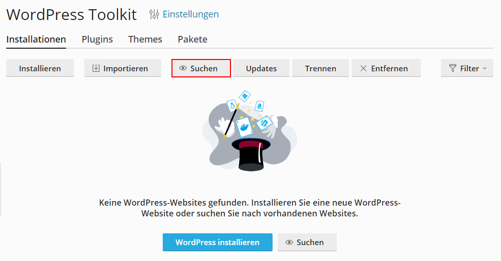 Das WordPress Toolkit kann in der Serververwaltung Plesk über den Menüpunkt WordPress aufgerufen werden.