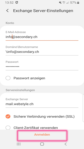Zum Schluss tippen Sie auf Anmelden. Das E-Mailkonto wird nun hinzugefügt.