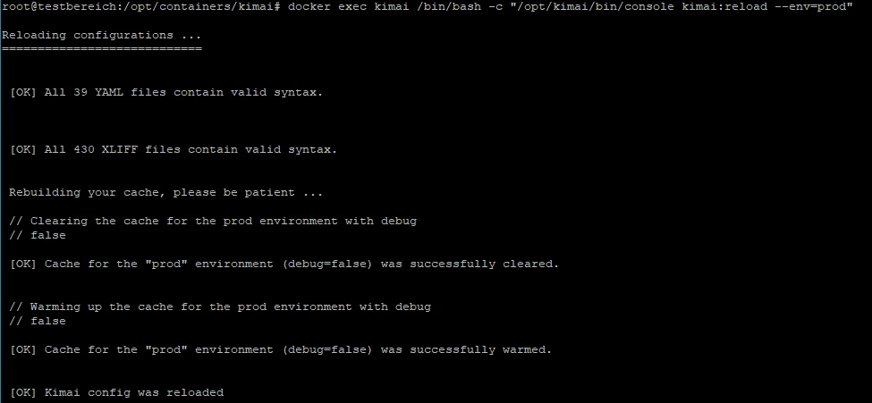docker exec kimai /bin/bash -c "/opt/kimai/bin/console kimai:reload --env=prod"
